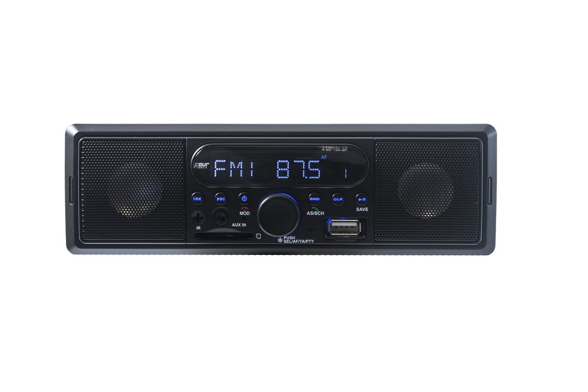 Tämä tekee laitteesta täydellisen esimerkiksi traktoriin tai mönkijään, jossa erillisille kaiuttimille ei aina ole paikkaa.