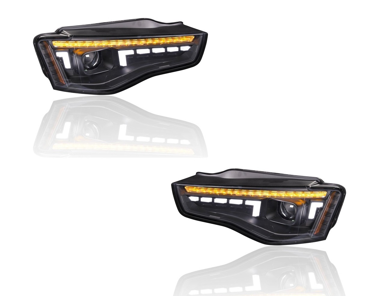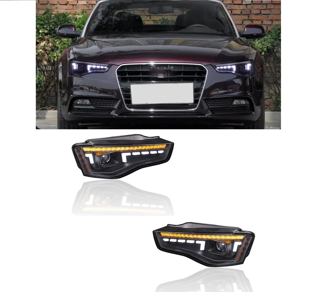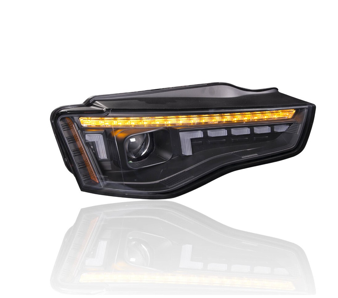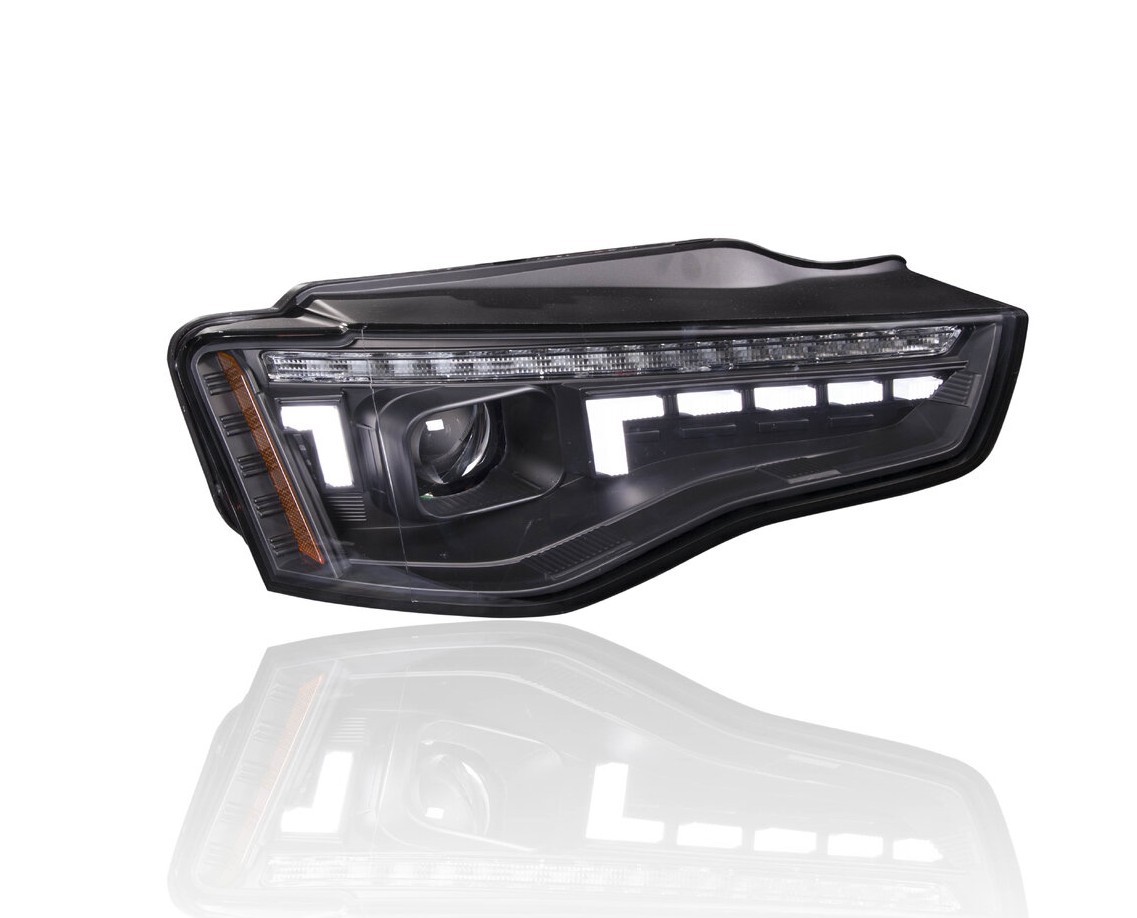 Upeat ajovalot Audi A5 -malleihin vm. 2011-2017. Liukuvalla seqventaali-vilkulla ja korkeudensäätömoottorilla. Autoihin joissa ei ole AFS-kaarreajovaloja
