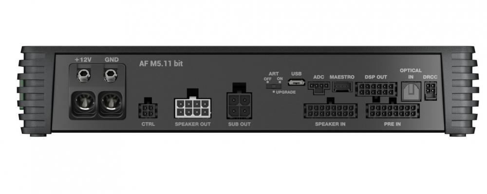 AF M5.11 bitissä on viisi korkealaatuista vahvistettua kanavaa 100W x 4 + 400W @4Ω*, 150WP x 4 + 600W @2Ω*, uusimman sukupolven Audison D-Class -tekniikan huippulaatuisella äänellä. Korkeammat kytkentätaajuudet, jyrkempi suodatus ja korkeamman toleranssin komponentit tuottavat äänen, joka ylittää D-luokan odotukset hämmästyttävän kompaktissa paketissa! Tämä yhdistettynä DSP:hen, joka toimii 24 bit/96 kHz taajuudella, laajentaa skaalaa 40 kHz:iin ja ansainnut halutun High-Resolution -sertifikaatin. Kanavaparien yhdistäminen tuottaa 200W x 2 + 400W @4Ω*, mikä takaa joustavan ja tehokkaan suorituskyvyn. Tuki Audison B-CON:n Absolute Volume -toiminnolle takaa maksimaalisen bittisyvyyden jopa langattomilla yhteyksillä!