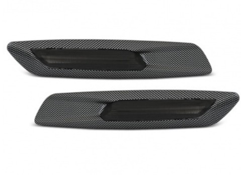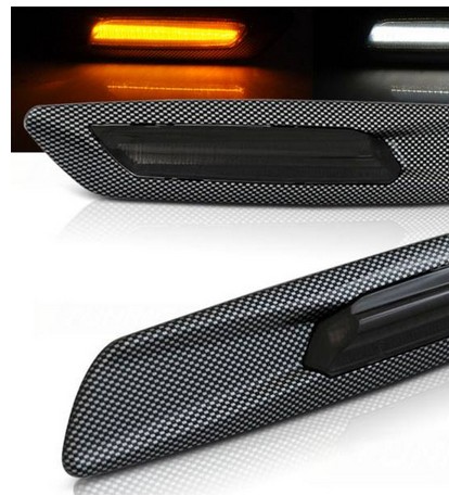 BMW E60 E61 E81 E82 E87 E88 E90 E91 E92 E93 X1 E84 carbon look sivuvilkut. Näyttävät tummat led-sivuvilkut carbon-kehyksellä.