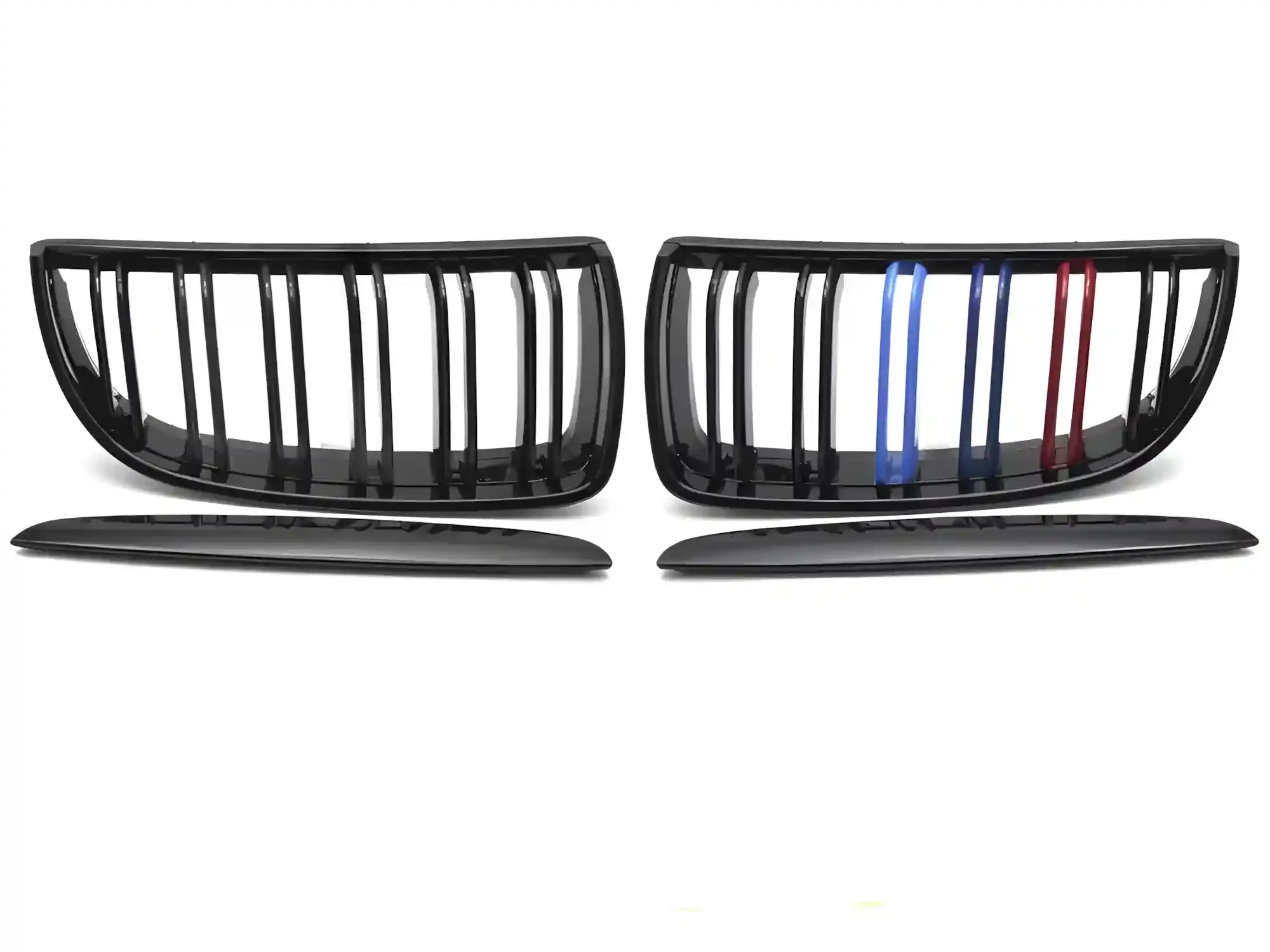 Päivitä BMW 3-sarjan ilme sporttisemmaksi M3-look tuplaripaisilla munuaisilla, joissa on ikoninen M-Color -väritys. Kiiltävän musta viimeistely tuo keulaan aggressiivisemman ja modernimman ilmeen säilyttäen OEM-henkisen istuvuuden.