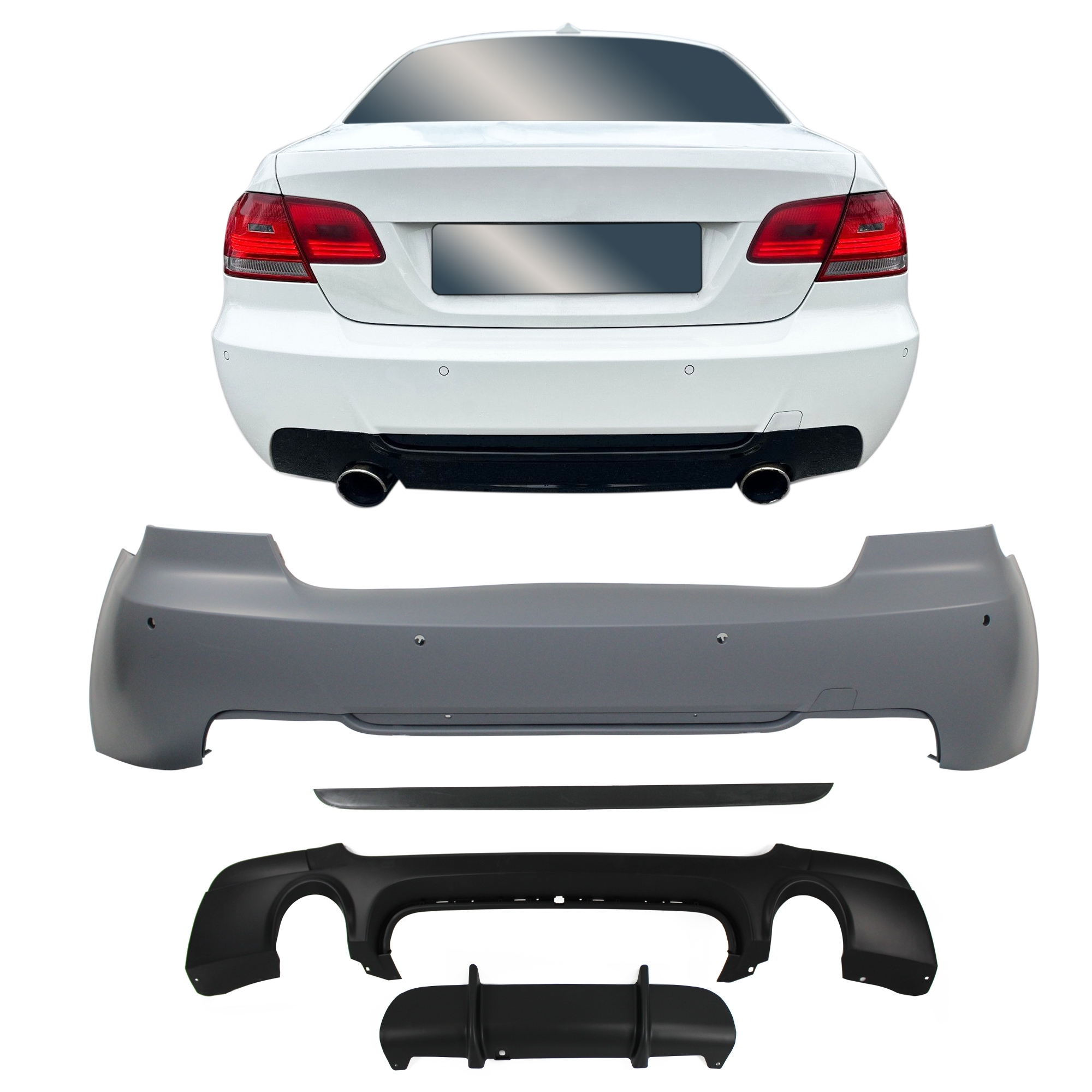 Bmw E92/E93 2006-2010 M-Look korisarja (PDC). Upea M-Sport korisarja parkkitutkilla ja ajovalon pesurin paikoilla vm. 2006-2010 Bmw E92 ja E93 -malleihin.