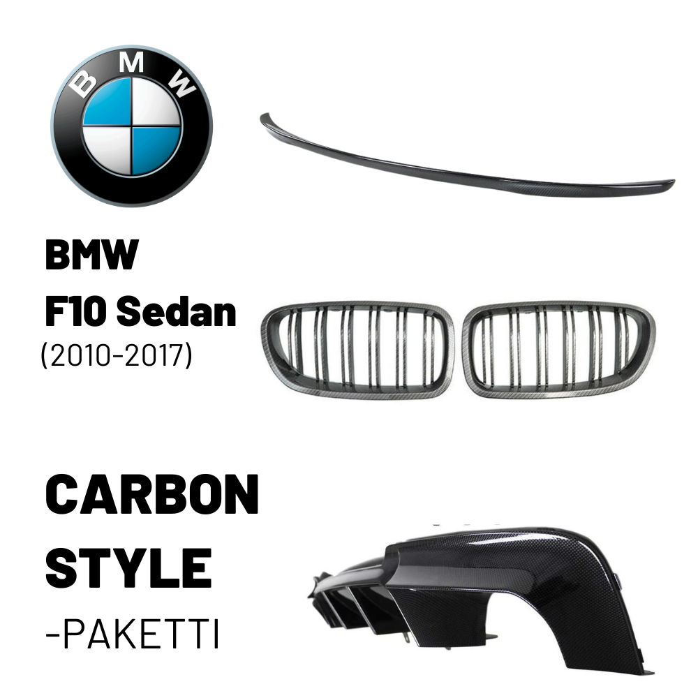 BMW F10 Sedan (2010-2017) Carbon Style Tuning paketti: munuaiset, takadiffuusori, takalippa