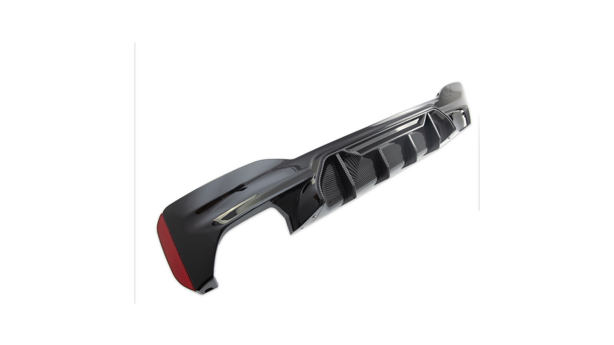 Todella näyttävä abs-muovista valmistettu diffuusori, jossa upea kiiltävä hiilikuitu-look kuviointi. Bmw G30/G31 autoihin vm. 2017 eteenpäin