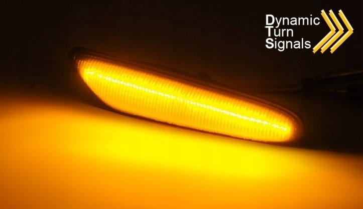 Näyttävät tummat LED Dynamic sivuvilkut BMW -malleihin. Moderni liukuva dynamic LED -vilkkutoiminto päivittää auton ulkonäön selvästi nykyaikaisemmaksi verrattuna alkuperäisiin sivuvilkkuihin.