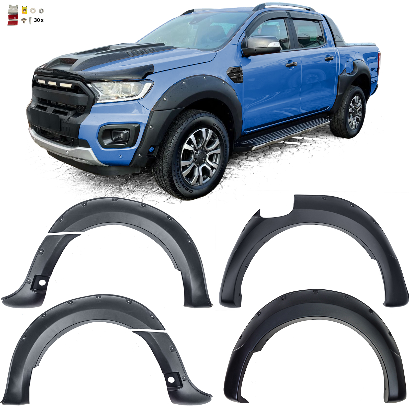 Ford Ranger 2019-2023 jumbo kaarilevikkeet. Todella näyttävät laadukkaasta muovista valmistetut lokasuojan levikkeet Ford Rangereihin vm. 2019-2023