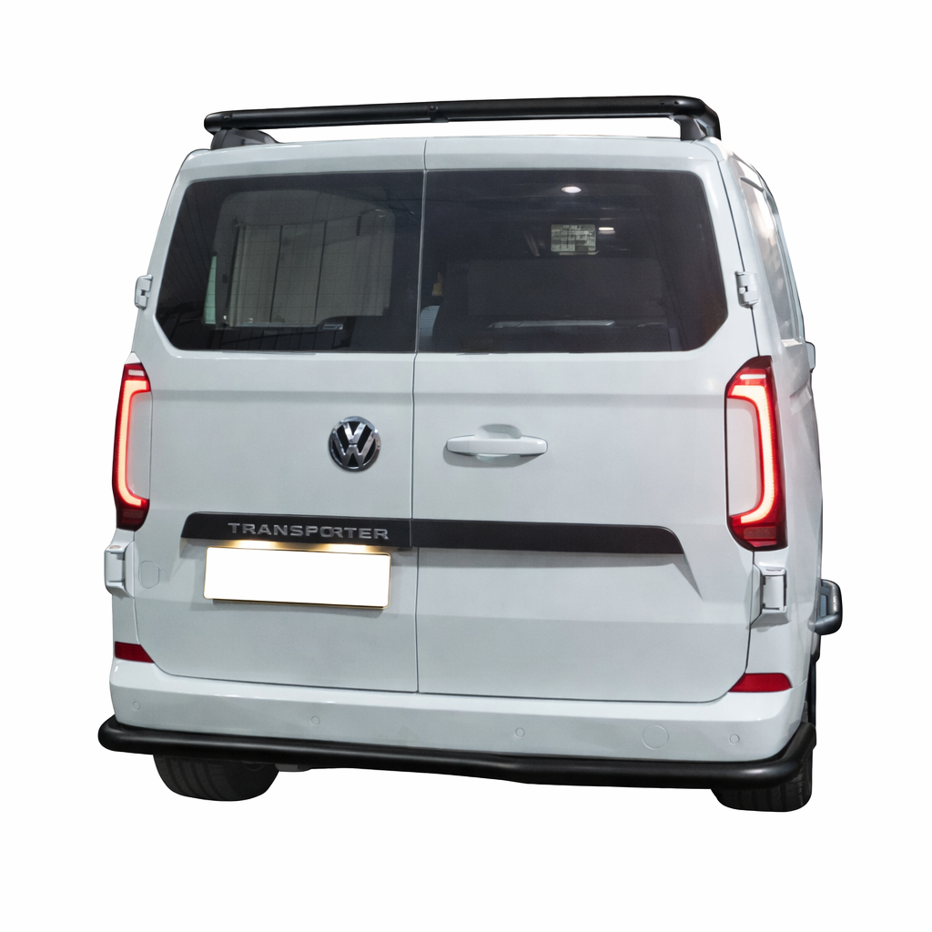 Ford Transit Custom / Vw Transporter T7 2024-> musta takapuskurin suojaputki. Upea musta rosterinen takapuskurin suojaputki läpi koko takapuskurin mitan