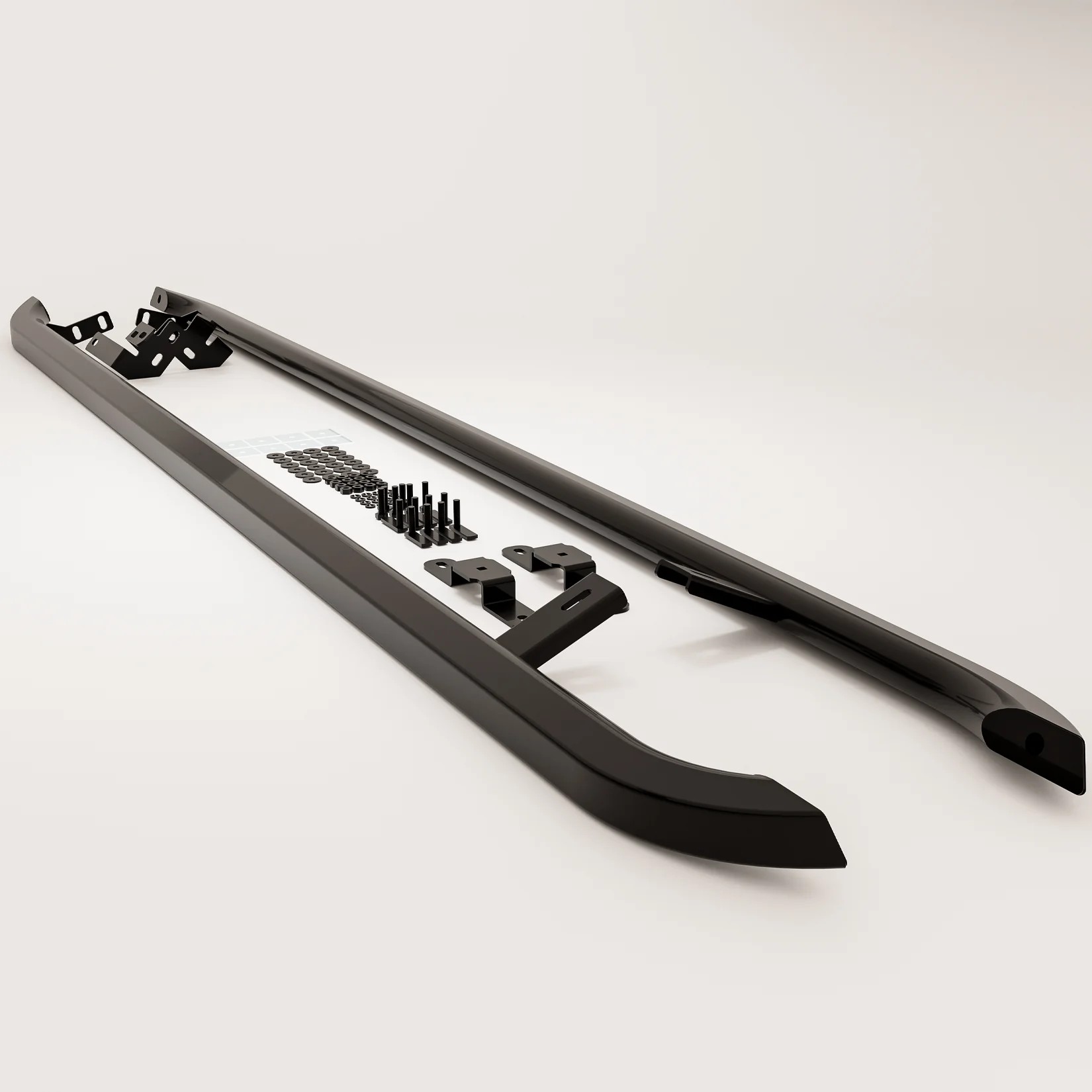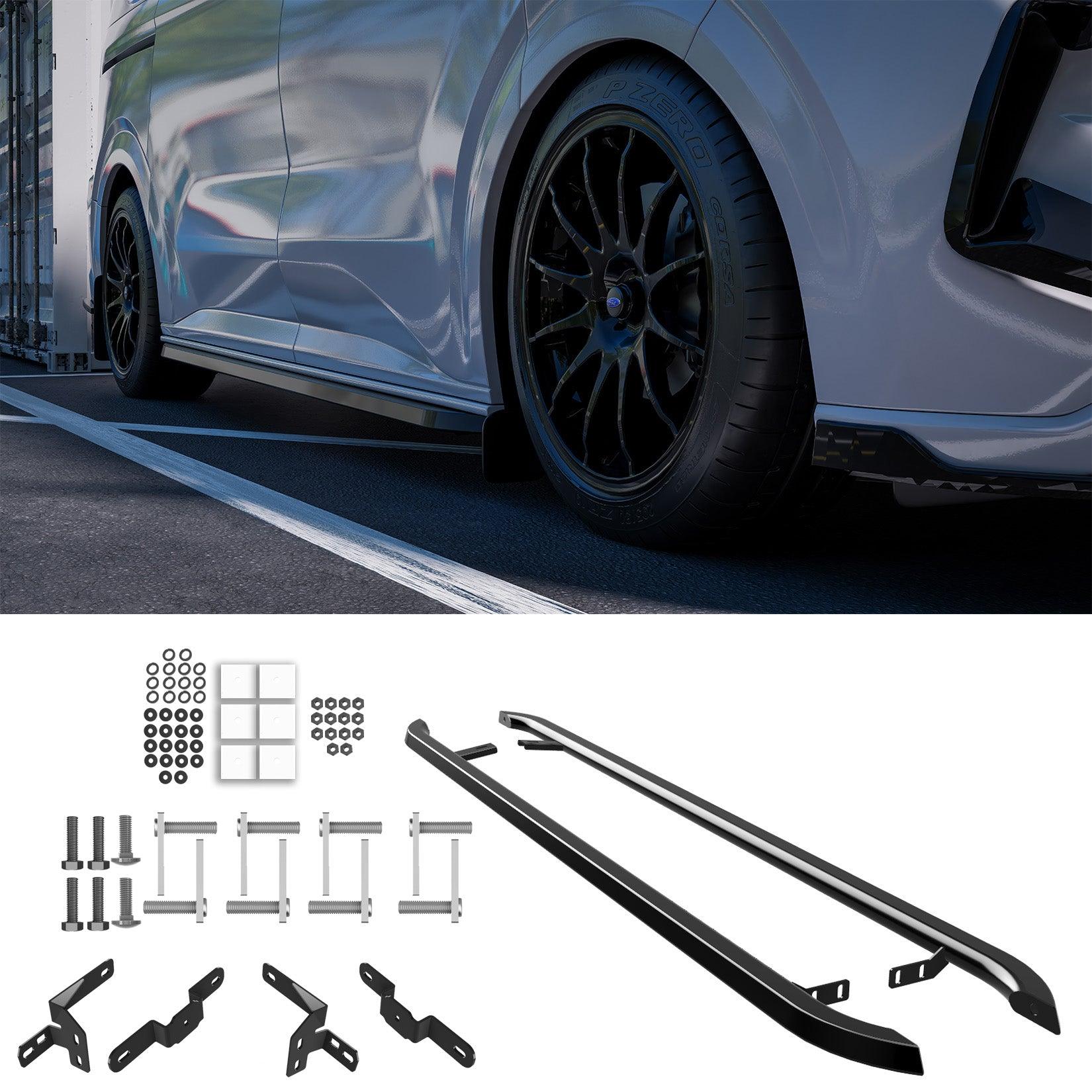 Ford Transit Custom / Vw Transporter T7 (2024->) mustat kanttiset Trapezoid kylkiputket (L2)