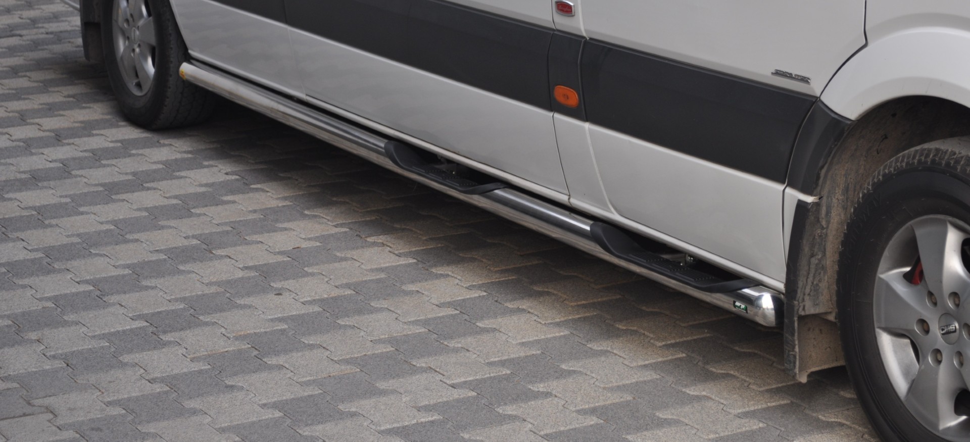 Näyttävät jopa 76mm vahvuiset Deluxe RST-kylkiputket pitkän akselivälin Ford Transit Vaneihin vm.2014- ja uudempiin autoihin. Putkissa syvä ja pitävä muoviaskelma astumista helpottamaan.