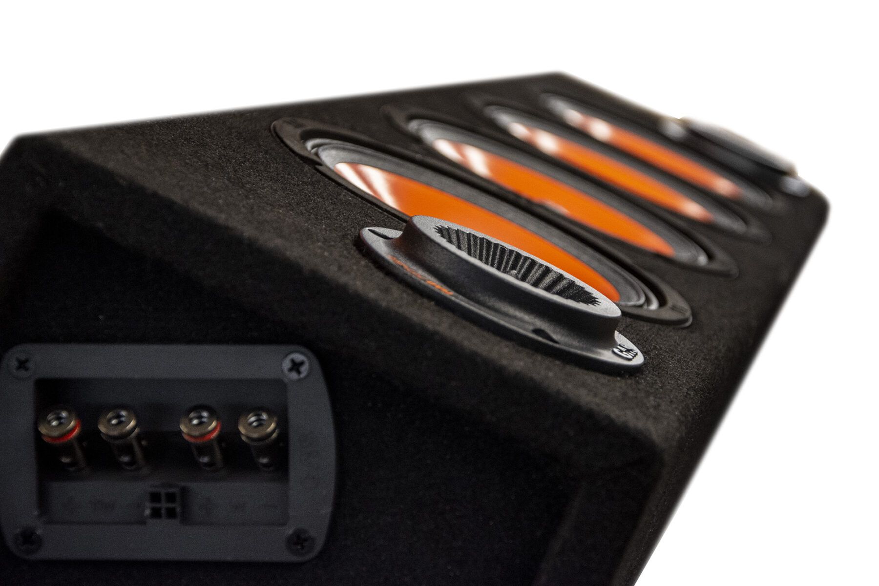 Kyseessä on valmiiksi kasattu ja verhoiltu MDF-kotelo, jossa on neljä kappaletta midbasso/keskiääniä ja yksi pari diskantteja. Kotelon päädyssä on refleksitunnelit ja kaikki kotelon kaapeloinnit on tehty valmiiksi. Liität tähän vahvistimesta tulevat kaiutinjohdot, niin asennus on sillä selvä. Helpommalla et voi päästä.