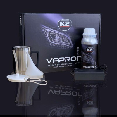 K2 Vapron D7900 on tehokas ajovalojen hartsitus- ja regenerointisarja, jolla palautat kellastuneet, haalistuneet ja naarmuuntuneet muoviajovalot kirkkaiksi ja uudenveroisiksi. Menetelmä perustuu nestemäisen polykarbonaatin höyrykäsittelyyn, joka rekonstruoi ajovalon pintakerroksen.