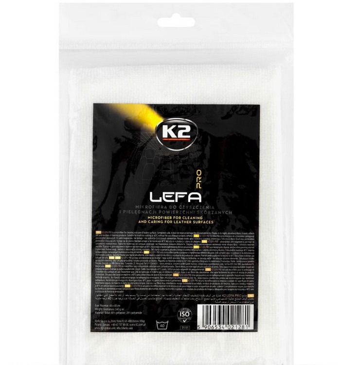 Valkoinen K2 LEFA PRO -mikrokuituliina on täysin turvallinen kaikille nahkapinnoille. Se ei värjää eikä haalista käsiteltäviä pintoja, joten sitä voi käyttää huoletta myös vahvempien puhdistusaineiden, kuten K2 Auron Strongin, kanssa.
