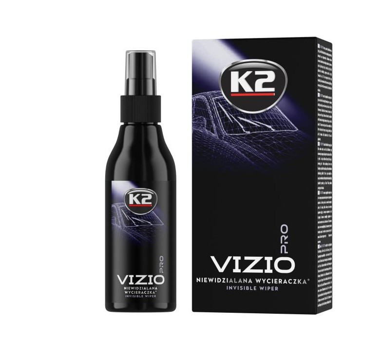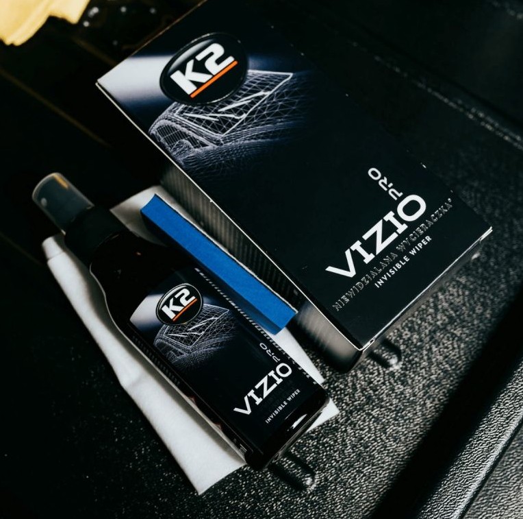 K2 VIZIO PRO – jokaisen kuljettajan ja auton unelma. Poikkeuksellinen tuote, joka voimakentän tavoin hylkii sateen ja lian tuulilasista, mikä lisää näkökenttää ja ajoturvallisuutta. 100 % ammattimainen hydrofobinen pinnoite, joka luo kestävän ja vankan suojakerroksen lasin pintaan.