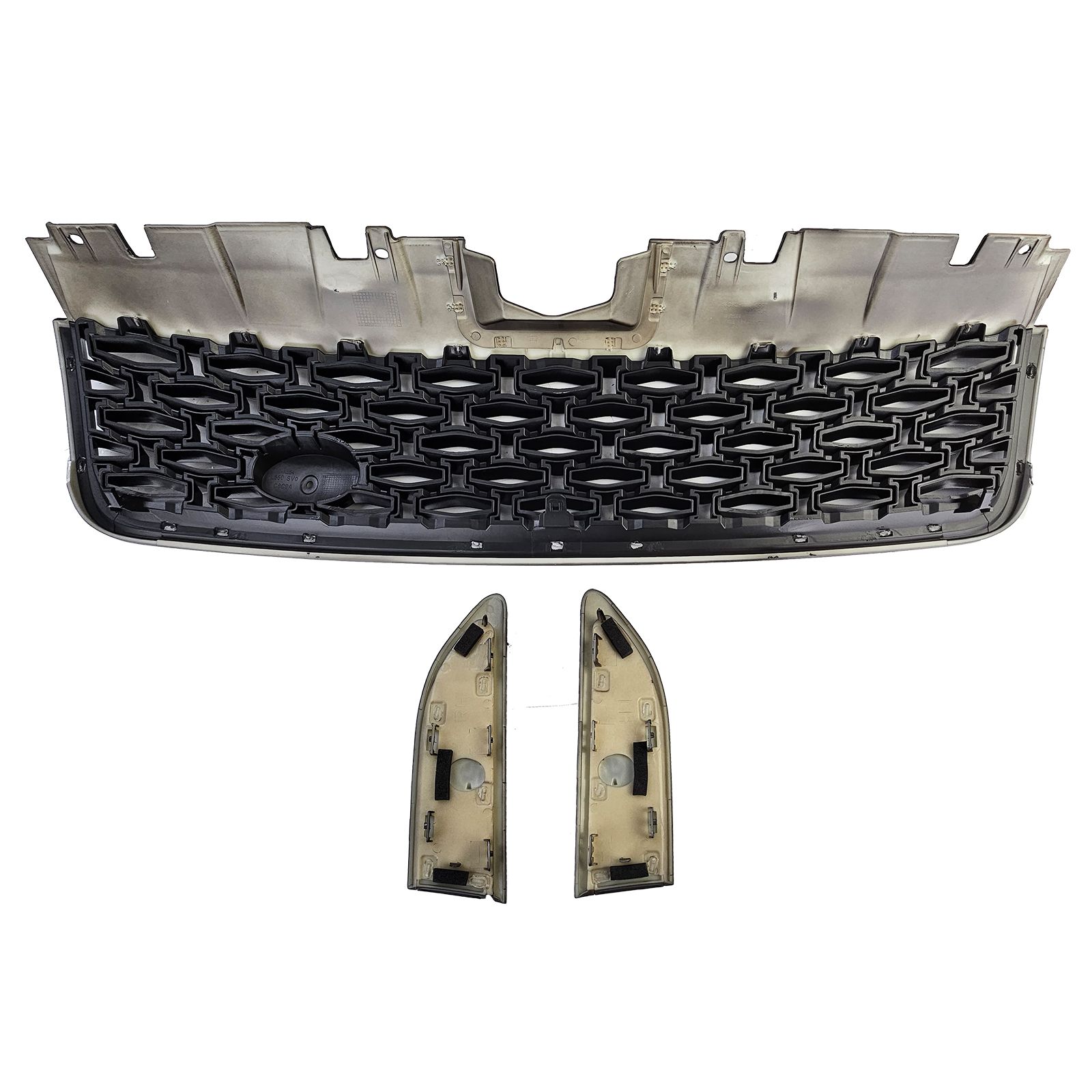 Upea kiiltävän musta abs-muovista valmistettu hunajakennomaski ja lokasuojan ”ilmanottoritilät”.