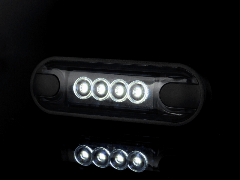 Valaisimessa on 4 kirkasta valkoista LEDiä, jotka takaavat hyvän näkyvyyden ja parantavat turvallisuutta liikenteessä. Laaja 12/24V käyttöjännite tekee valosta yhteensopivan lähes kaikkien ajoneuvojen kanssa.