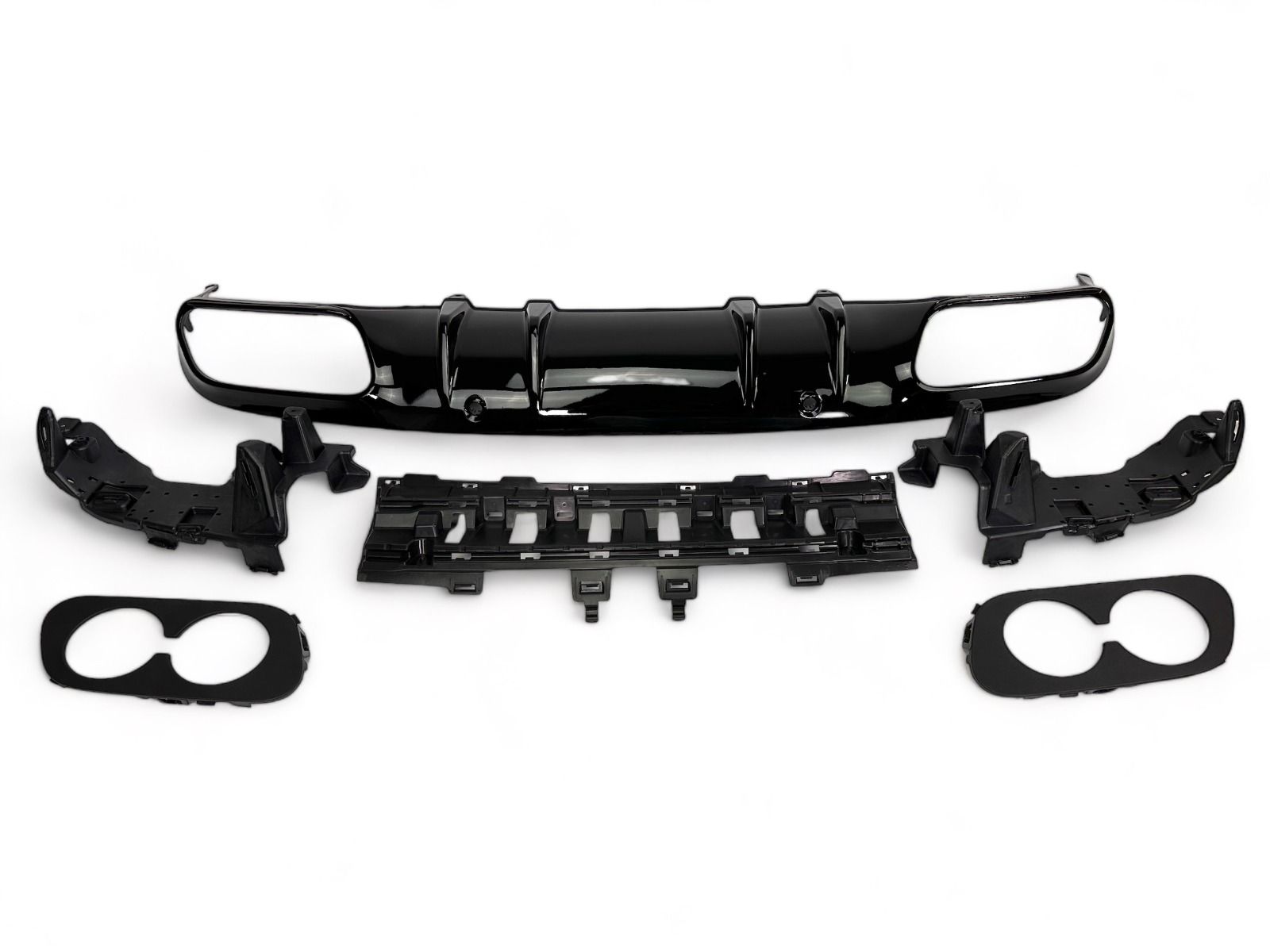 C43 AMG-look kiiltävän musta diffuusori, sisältää pakoputkenpäät, Mercedes-Benz C205 Coupe ja A205 Cabrio -malleihin.