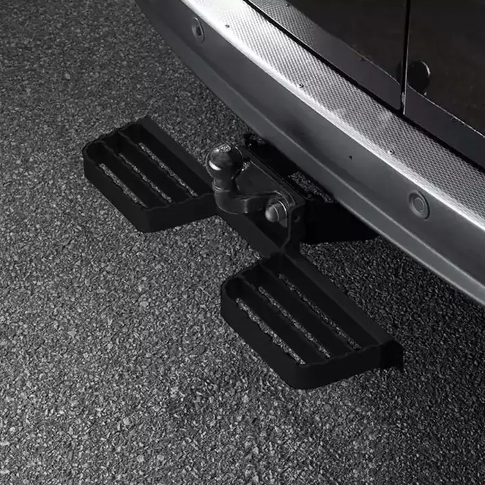 Laadukas tehdastekoinen mustaksi pulverimaalattu 600mm vetokoukun askelma. Yleismallin lisäaskelma, joka kiinnitetään vetokoukun alle, sopii autoihin jossa ruuvikiinnitteinen koukkuosa 90mm reikäjaolla