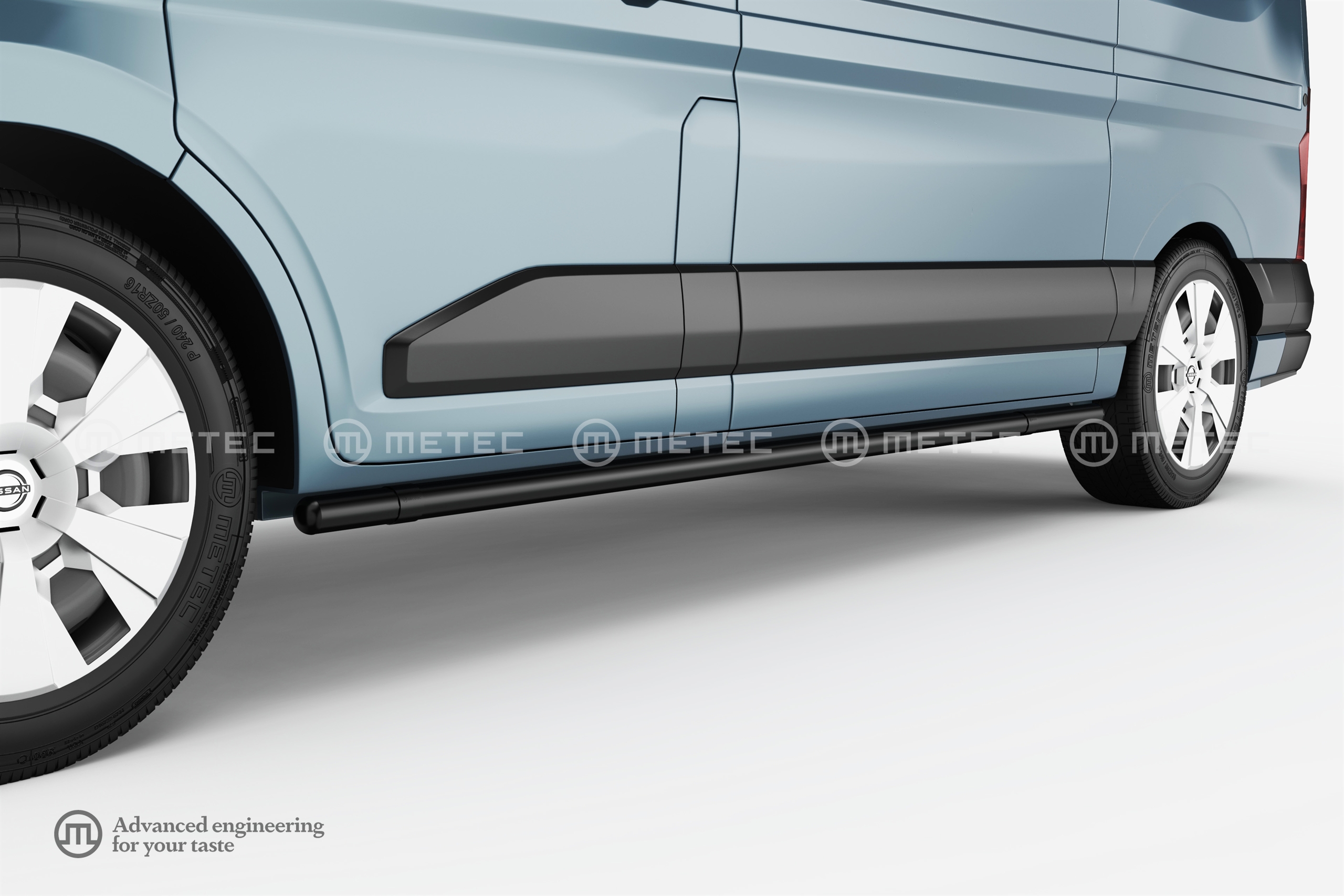 Nissan Interstar / Renault Master (2024-) L3 Metec mustat kylkiputket. Upeat mustaksi pulverimaalatut Metecin valmistamat rosterikylkiputket