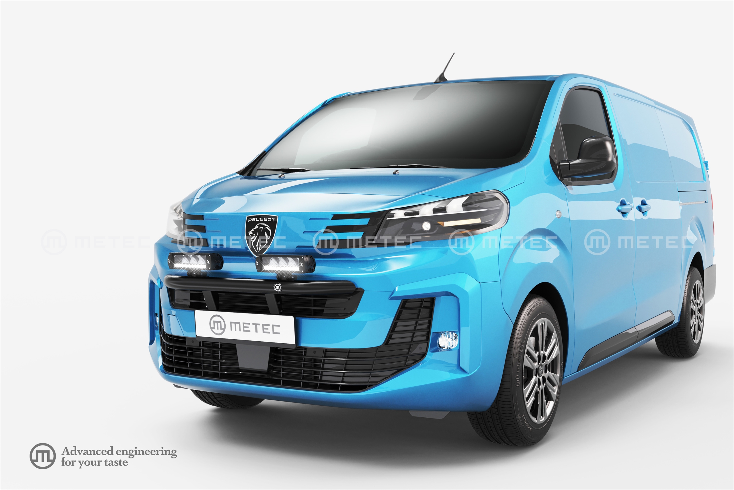 Toyota Proace/ Citroen Jumpy/ Peugeot Expert musta pieni valoteline 2024->. Laadukas mustaksi pulverimaalattu rosterinen pieni valorauta uusi koppaisiin Proaceen, Jumpyyn ja Expertiin vm. 2024 eteenpäin