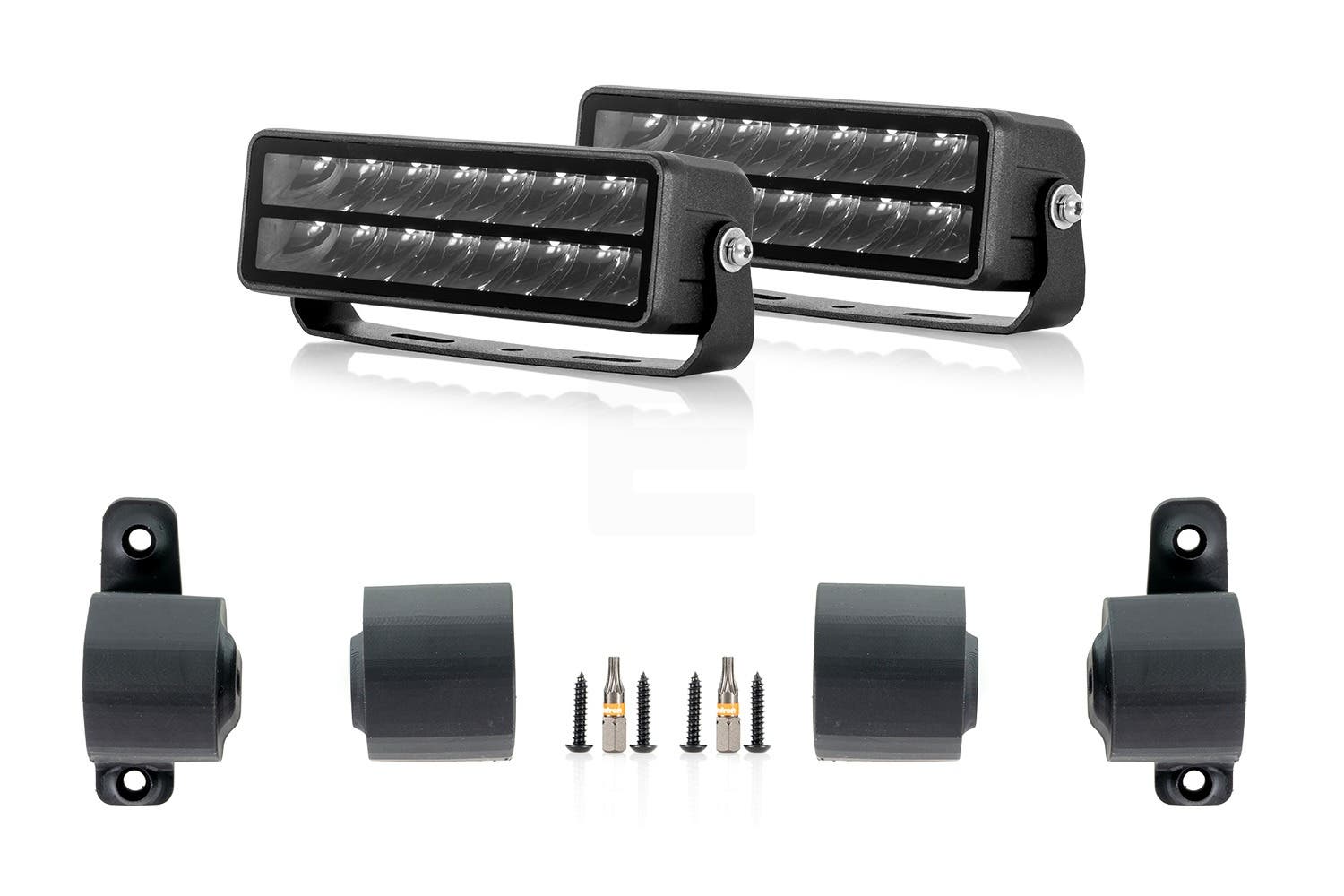Tyylikkäät tummat heijastimet ja matalarakenteinen muotoilu sulautuvat saumattomasti auton etumaskiin. Korkeat tiiveysluokitukset IP67 & IP69K takaa valojen ja sarjan kestävyyden vaativissa olosuhteissa.