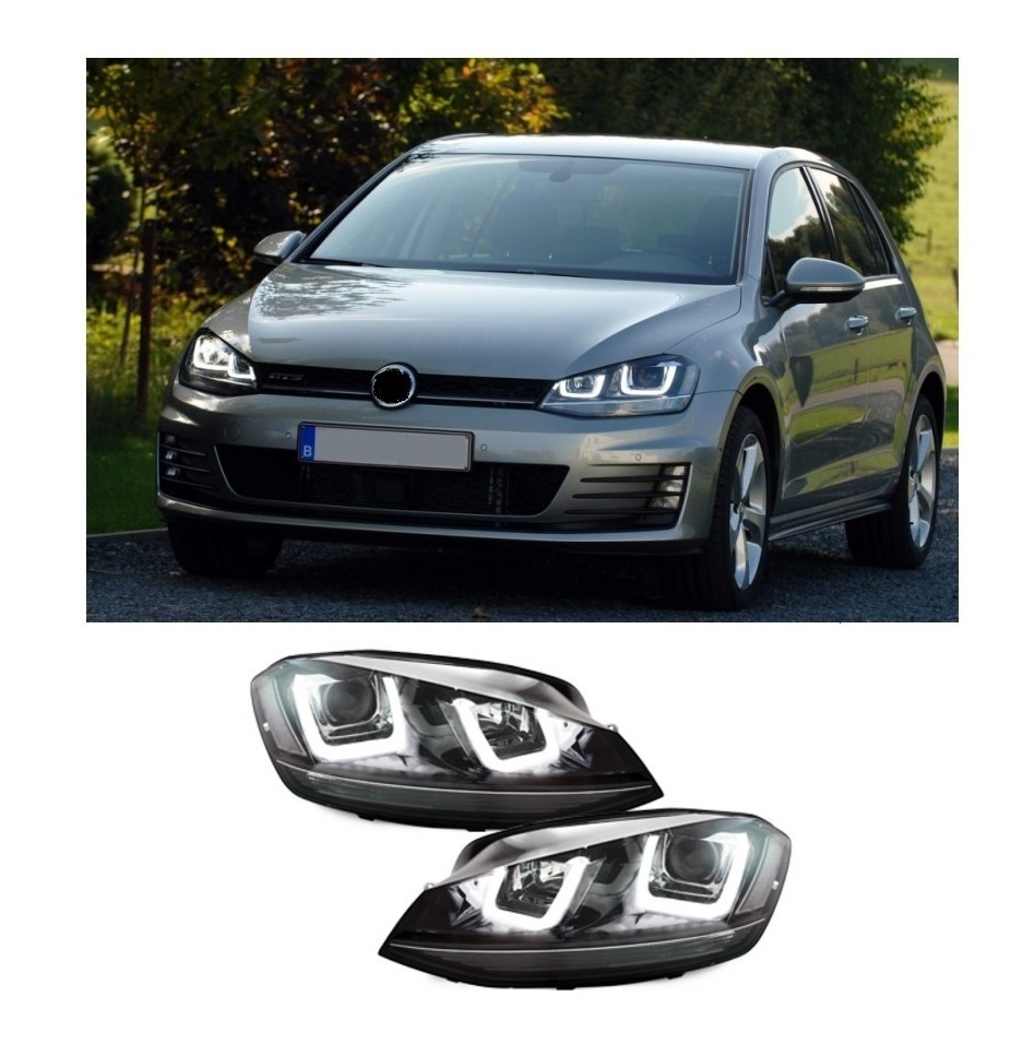 Päivitä VW Golf 7 -mallisi ulkonäkö ja näkyvyys nykyaikaisilla LED-etuvaloilla. Nämä valot on suunniteltu erityisesti alkuperäisillä halogeenivaloilla varustettuihin malleihin, ja ne tarjoavat näyttävän U-muotoisen LED-päiväajovalon sekä tehokkaan valotehon tieliikenteeseen.